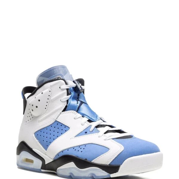 Part of the collegiate series from Jordan Brand, the Air Jordan 6 Retro “UNC” sneaker pays tribute to the University of North Carolina. The pair is dressed in the classic “UNC” colourway – in white, light blue and dark blue tones. The woven jock tag is stitched onto the heel while an argyle print lands on the translucent tongue. An icy translucent outsole finishes the look with comfort.