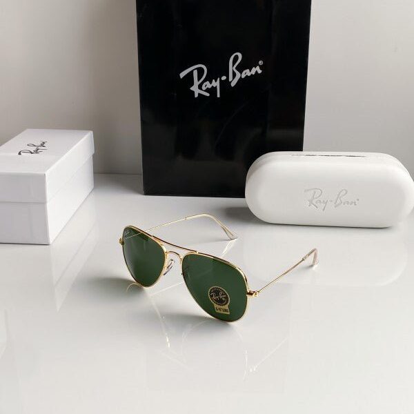 Branded Rb Gold Green Aviator Sunglasses